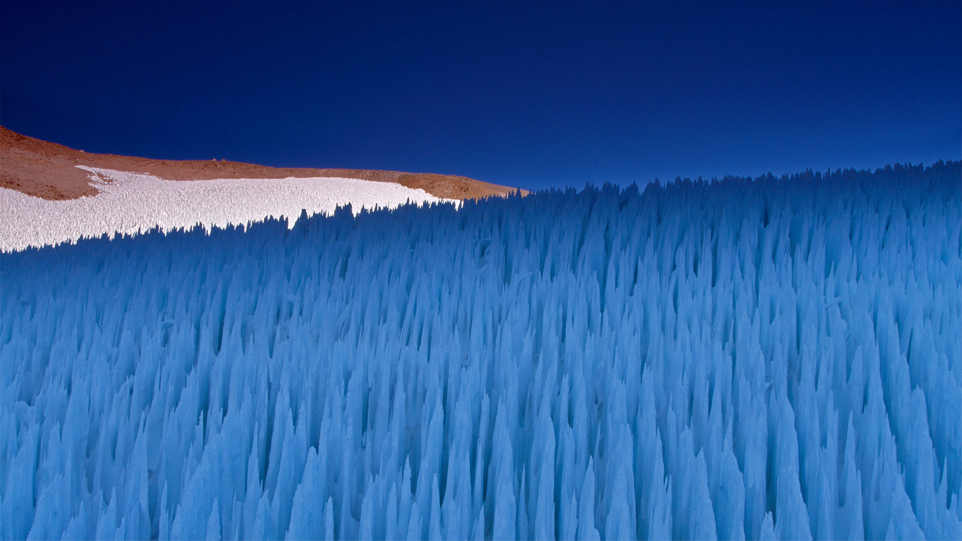 Nieve penitente ice formations seen on Agua Negra Pass in the Coquimbo Region of the Andes, 智利 (© 阿特·沃尔夫/达妮塔·德利蒙特)